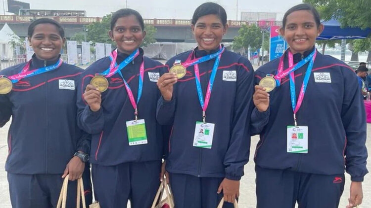 അഹമ്മദാബാദ്: ദേശീയ ഗെയിംസിൽ തുഴച്ചിൽ ഇനത്തിൽ തുടർച്ചയായി വീണ്ടും ഇരട്ട സ്വർണ്ണം സ്വന്തമാക്കി കേരളം. വനിതകളുടെ 200 മീറ്റർ സിംഗിൾ കയാക്കിങ്ങിലും കനോയിങ്ങിലുമാണ് സ്വർണനേട്ടം. പാർവതി, മേഘ പ്രദീപ് എന്നിവർക്കാണ് സ്വർണം ലഭിച്ചത്.