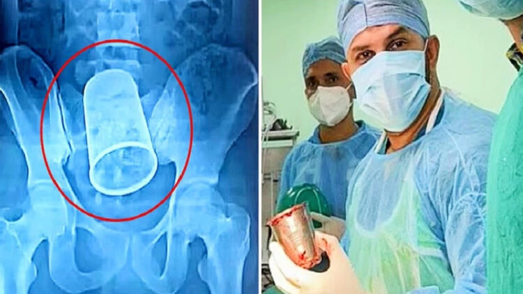 പട്‌ന : 22 കാരനായ യുവാവിന്റെ വയറ്റിൽ നിന്ന് പുറത്തെടുത്തത് സ്റ്റീൽ ഗ്ലാസ്. ബീഹാറിലെ ബേട്ടിയയിലാണ് സംഭവം. കഠിനമായ വയറു വേദന അനുഭവപ്പെടുകയും മലദ്വാരത്തിലൂടെ രക്തം പുറത്തുവരികയും ചെയ്തതോടെയാണ് യുവാവിനെ ആശുപത്രിയിൽ എത്തിച്ചത്.