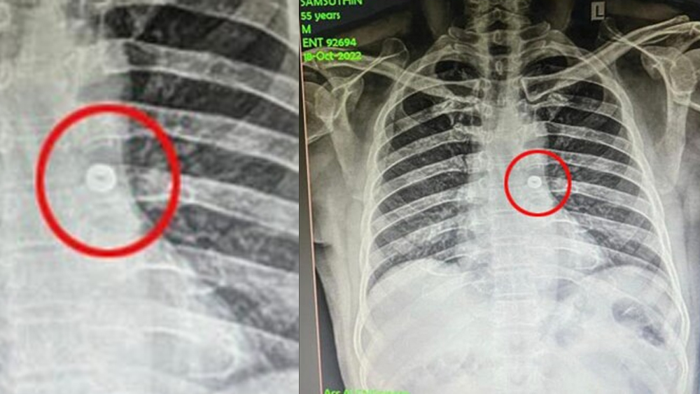 നട്ട് ഉള്ളിൽ പോയതോടെ ഷംസുദ്ദീൻ ചുമയ്ക്കാൻ ആരംഭിച്ചു. പിന്നാലെ ശ്വാസം എടുക്കാൻ ബുദ്ധിമുട്ട് അനുഭവിച്ചു. ഇതോടെ ഒപ്പം ഉണ്ടായിരുന്നവർ ഇയാളെ ആശുപത്രിയിൽ എത്തിക്കുകയായിരുന്നു. തുടർന്ന് ഷംസുദ്ദീനെ ഓട്ടോറൈനോലാറിംഗോളജി വിഭാഗത്തിൽ പ്രവേശിപ്പിച്ചു. നെഞ്ചിന്റെ എക്സ്-റേ എടുത്തപ്പോൾ ഇയാൾ വിഴുങ്ങിയ നട്ട് ശ്വാസനാളത്തിൽ കുടുങ്ങി ഇടതു ശ്വാസകോശത്തിലേക്ക് പോകുന്നതായി ഡോക്ടർമാർ കണ്ടെത്തി.