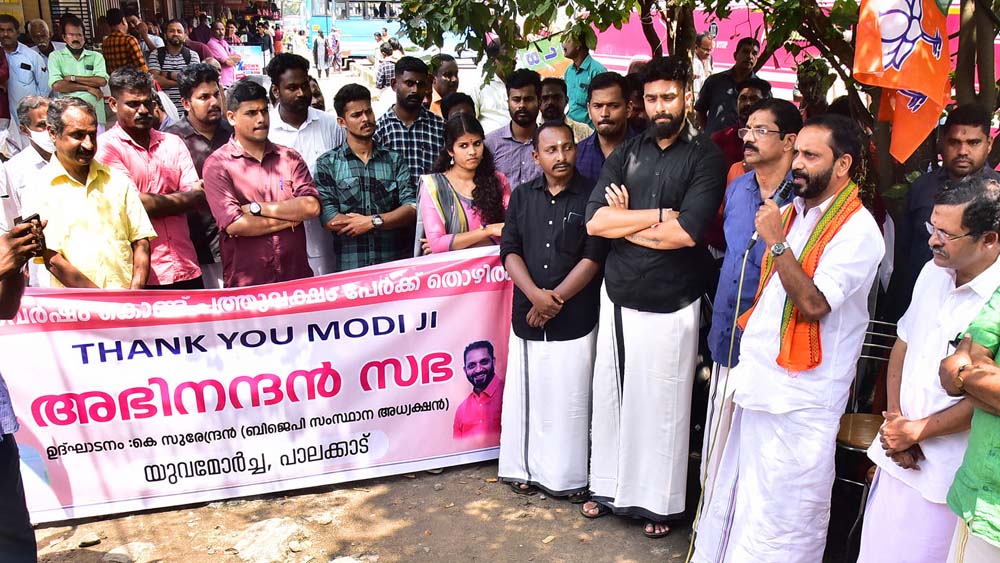 താങ്ക് യൂ മോദിജി എന്ന ബാനറുമായിട്ടാണ് യുവാക്കൾ പ്രധാനമന്ത്രിക്ക് നന്ദി പറഞ്ഞ് ഇറങ്ങിയത്. പാലക്കാട് സ്റ്റേഡിയം ബസ്റ്റാൻഡ് പരിസരത്ത് ആയിരുന്നു പരിപാടി. പ്രധാനമന്ത്രിയുടെ നീക്കത്തിൽ സന്തോഷം പ്രകടിപ്പിച്ച് മധുര പലഹാരങ്ങളും വിതരണം ചെയ്തു.