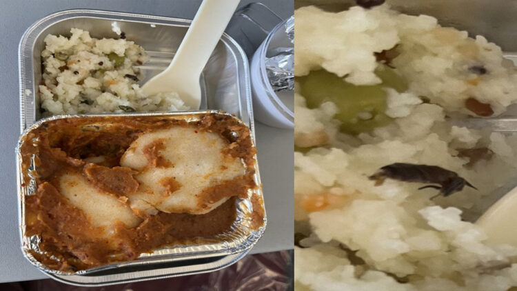 ഉപ്പുമാവിൽ നിന്ന് പാറ്റയെ കിട്ടിയെന്നാണ് നിഹുലിന്റെ ആരോപണം. ഇഡ്ഡലിയും സാമ്പാറും ഉപ്പുമാവുമാണ് ചിത്രത്തിൽ കാണാനാകുന്നത്. ആദ്യം ഫ്ളൈറ്റ് വിവരങ്ങൾ തേടിയ കമ്പനി, ട്വിറ്റീലൂടെ തന്നെ അടുത്ത മറുപടിയും നൽകി. കമ്പനി ഈ ഭക്ഷണം വിശദമായി ലാബിൽ അയച്ച് പരിശോധിച്ചുവെന്നും, അത് പാറ്റയായിരുന്നില്ല, മറിച്ച് വറുത്ത ഇഞ്ചിയായിരുന്നുവെന്നും അധികൃതർ ട്വീറ്റിൽ പറയുന്നു. പരിശോധനയുടേത് ഉൾപ്പെടെയുള്ള വിവരങ്ങൾ മെയിൽ ചെയ്തിട്ടുണ്ടെന്നും കമ്പനി പറയുന്നു.