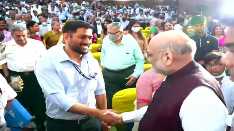 ന്യൂഡൽഹി: കേന്ദ്ര ആഭ്യന്തര മന്ത്രി അമിത് ഷായ്ക്കൊപ്പം നിൽക്കുന്ന മുൻ ഇന്ത്യൻ ക്രിക്കറ്റ് ടീം ക്യാപ്ടൻ മഹേന്ദ്ര സിംഗ് ധോണിയുടെ ചിത്രങ്ങൾ സാമൂഹിക മാദ്ധ്യമങ്ങളിൽ വൈറൽ ആകുന്നു. മുൻ ബിസിസിഐ അദ്ധ്യക്ഷൻ എൻ ശ്രീനിവാസന്റെ ഉടമസ്ഥതയിലുള്ള ഇന്ത്യാ സിമന്റ്സിന്റെ 75ആമത് വാർഷികവുമായി ബന്ധപ്പെട്ട് ചെന്നൈയിൽ നടന്ന ചടങ്ങിലായിരുന്നു ഇരുവരും കണ്ടു മുട്ടിയത്. എം എസ് ധോണി ബിജെപിയിൽ ചേരുമെന്ന തരത്തിൽ നേരത്തേ മുതൽ പ്രചരിച്ചിരുന്ന അഭ്യൂഹങ്ങൾ ഇതോടെ വീണ്ടും ശക്തമാവുകയാണ്.