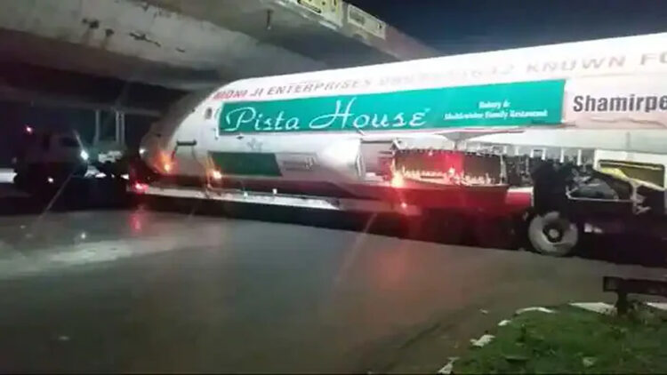 അമരാവതി: കൊച്ചിയിൽ നിന്ന് ഹൈദരാബാദിലേക്ക് റോഡ് മാർഗം പോയ ‘വിമാനം’ പാലത്തിനടിയിൽ കുടുങ്ങി. ട്രക്കിൽ വെച്ച് കൊണ്ടുപോകുകയായിരുന്ന വിമാനം ആന്ധ്രാപ്രദേശിൽ വെച്ചാണ് കുടുങ്ങിയത്. ബാപ്ടല ജില്ലയിൽ വെച്ച് പാലത്തിനടിയിലൂടെ കടന്നുപോകുന്ന റോഡിൽ വെച്ചായിരുന്നു സംഭവം.