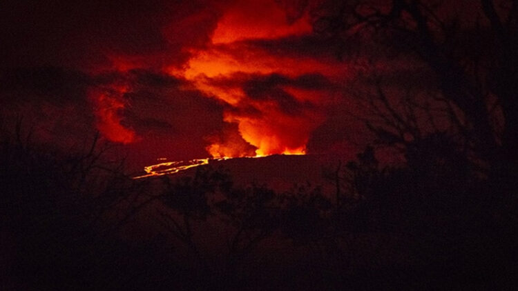 സജീവമായി ഹവായിയിലെ മൗന ലോവയിലെ അഗ്നിപർവ്വതം. ഇതിനുള്ളിൽ നിന്ന് 200 അടി അതായത് 60 മീറ്റർ വരെ ഉയരത്തിൽ ലാവ പ്രവഹിക്കുന്നുണ്ട്. ലോകത്തിലെ ഏറ്റവും വലിയ സജീവ അഗ്നിപർവ്വതങ്ങളിൽ ഒന്നാണിത്. പ്രദേശത്ത് നദികൾ പോലെ വലിയ ലാവാ പ്രവാഹമാണ് ഉണ്ടായിരിക്കുന്നത്. 40 വർഷത്തിന് ശേഷമാണ് മൗന ലോവ വീണ്ടും സജീവമായത്. പർവ്വതത്തിന്റെ നാല് വിള്ളലുകളിൽ നിന്നാണ് ലാവ പുറത്തേക്ക് ഒഴുകുന്നത്. അഗ്നിപർവ്വതത്തിൽ നിന്നുള്ള ചൂടും പുകയും കൊണ്ട് ആകാശത്ത് പ്രത്യേക മേഘങ്ങൾ രൂപപ്പെട്ടിട്ടുണ്ട്.