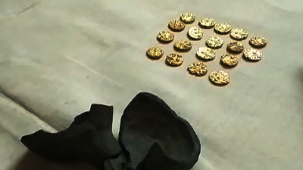 കുഴൽക്കിണറിനായി വയലിൽ കുഴിയെടുക്കവെ മൺകുടം ലഭിച്ചു; ഉടച്ചുനോക്കിയപ്പോൾ 17 സ്വർണ നാണയങ്ങൾ