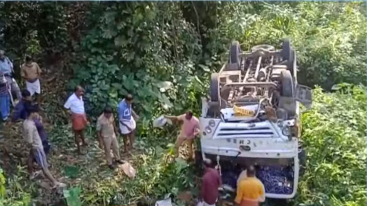എരുമേലിക്ക് സമീപം കണ്ണിമല ഇറക്കത്തിൽ നിയന്ത്രണം നഷ്ടമായ വാഹനം ക്രാഷ് ബാരിയർ തകർത്ത് കുഴിയിലേയ്ക്ക് മറിയുകയായിരുന്നു. വാഹനത്തിൽ ആകെ 21 പേരാണുണ്ടായിരുന്നത്. പരിക്കേറ്റവരെ കാഞ്ഞിരപ്പള്ളി ജനറൽ ആശുപത്രിയിൽ പ്രവേശിപ്പിച്ചിരിക്കുകയാണ്.