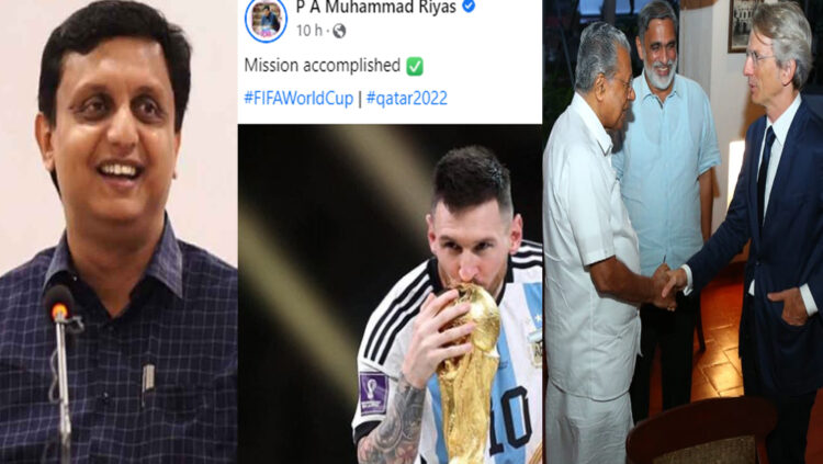 അർജന്റീനയുടെ ചരിത്ര വിജയത്തിന് പിന്നാലെ ‘ദൗത്യം പൂർത്തിയാക്കി'(Mission accomplished) എന്നാണ് ലോകകപ്പിൽ മെസി മുത്തമിടുന്ന ചിത്രം പങ്കുവെച്ചു കൊണ്ട് മുഹമ്മദ് റിയാസ് കുറിച്ചത്. ഒരു വിഭാഗം മന്ത്രിയുടെ പോസ്റ്റിന് താഴെ അഭിനന്ദനങ്ങൾ രേഖപ്പെടുത്തുമ്പോൾ മറ്റൊരു വിഭാഗം ദിവസങ്ങൾക്ക് മുമ്പ് മുഹമ്മദ് റിയാസ് ഫെയ്സ്ബുക്കിൽ പങ്കുവെച്ച പോസ്റ്റ് കുത്തിപ്പൊക്കി ട്രോളുകയാണ്. ‘ഫ്രാന്സ് ഫുട്ബോള് ടീമിന് മുഖ്യമന്ത്രിയുടെ അഭിനന്ദനവും കേരളത്തിലേക്ക് ഫ്രാന്സിന് സ്വാഗതവും. ലോകകപ്പ് ഫുട്ബോളില് സെമി ഫൈനലില് എത്തിയ ഫ്രാന്സ് ഫുട്ബോള് ടീമിനുള്ള അഭിനന്ദനം മുഖ്യമന്ത്രി അറിയിച്ചിട്ടുണ്ട്’ എന്ന് ദിവസങ്ങൾക്ക് മുമ്പ് മുഹമ്മദ് റിയാസ് ഫെയ്സ്ബുക്കിൽ കുറിച്ചിരുന്നു.