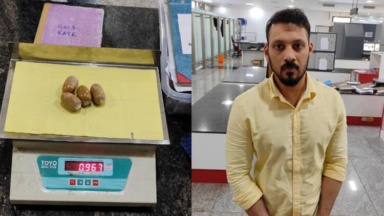 ഉച്ചയോടെയായിരുന്നു സംഭവം. മലദ്വാരത്തിൽ ഒളിപ്പിച്ചാണ് ഇയാൾ സ്വർണം കടത്താൻ ശ്രമിച്ചത്. സ്വർണം ക്യാപ്‌സൂളുകളാക്കി ഇയാൾ മലദ്വാരത്തിൽ ഒളിപ്പിക്കുകയായിരുന്നു. സംശയം തോന്നിയതിനെ തുടർന്ന് കസ്റ്റംസ് ഇയാളെ വിശദമായി പരിശോധിച്ചു. ഇതോടെയാണ് സ്വർണം കടത്താൻ ശ്രമിച്ചതായി വ്യക്തമായത്. ഇയാളുടെ പക്കൽ നിന്നും 967 ഗ്രാം സ്വർണമാണ് പിടിച്ചെടുത്തത്.