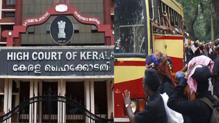 കൊച്ചി: ശബരിമല തീർത്ഥാടകർക്ക് പമ്പയിൽ കെഎസ്ആർടിസി ബസിൽ കയറാനുള്ള ബുദ്ധിമുട്ടുകൾ പരിഹരിക്കാൻ നിർദേശവുമായി ഹൈക്കോടതി. പമ്പയിലെ കെഎസ്ആർടിസി ബുക്കിങ് ഓഫീസിന് സമീപം ബാരിക്കേഡുകൾ സ്ഥാപിക്കാൻ നിർദേശിച്ചു. തിരക്ക് കുറഞ്ഞ സമയത്ത് മൂന്ന് ബസുകളും, തിരക്കേറിയ സമയത്ത് 10 ബസുകളെങ്കിലും നിർബന്ധമായും പമ്പയിൽ ഉണ്ടാകണമെന്നും ഹൈക്കോടതി നിർദേശം നൽകി.