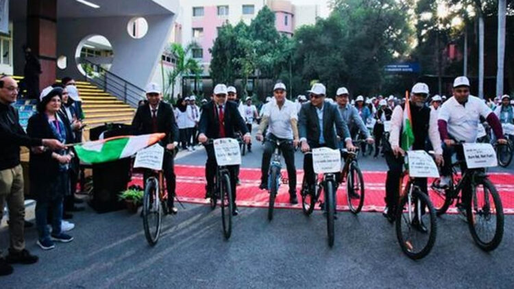 ന്യൂഡൽഹി: ലേഡി ഹാർഡിംഗ് മെഡിക്കൽ കോളേജിൽ ‘ആരോഗ്യത്തിനുള്ള സൈക്കിൾ്’ എന്ന പ്രമേയവുമായി സൈക്ലത്തോൺ സംഘടിപ്പിച്ച് കേന്ദ്ര ആരോഗ്യമന്ത്രാലയം. വിദ്യാർത്ഥികളും അദ്ധ്യാപകരും ജീവനക്കാരും വളരെ ആവേശത്തോടെ സൈക്ലത്തോണിൽ പങ്കെടുത്തു.ശാരീരികവും മാനസികവുമായ ക്ഷേമം പ്രോത്സാഹിപ്പിക്കുന്നതിനും പരിസ്ഥിതി സൗഹൃദ ഗതാഗതത്തെക്കുറിച്ച് നമ്മുടെ പൗരന്മാരെ അറിയിക്കുന്നതിനുമാണ് ഇത്തരം റാലികൾ സംഘടിപ്പിക്കുന്നതെന്ന് കേന്ദ്ര ആരോഗ്യമന്ത്രി മൻസൂഖ് മാണ്ഡവ്യ പറഞ്ഞു.