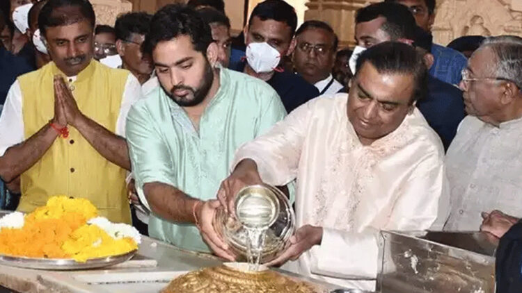 ദേവസന്നിധിയിൽ മുകേഷ് അംബാനിയും ആകാശ് അംബാനിയും ശിവലിംഗത്തിൽ അഭിഷേകം നടത്തി പ്രാർത്ഥിച്ചു. അംബാനിമാർ പാരമ്പര്യങ്ങളിൽ വേരൂന്നിയവരാണ്. എല്ലാ ഹൈന്ദവ ആഘോഷങ്ങളിലും പങ്കുച്ചേരുന്നവരുമാണ്. സോമനാഥ ക്ഷേത്ര ട്രസ്റ്റിന് മുകേഷ് അംബാനി 1.51 കോടി രൂപ സംഭാവന നൽകുകയും ചെയ്തു.