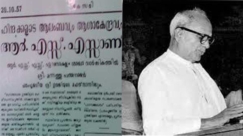 ആർഎസ്എസിന്റെ ദ്വിതീയ സർസംഘചാലകായിരുന്ന ഗുരുജി ഗോൾവാൾക്കാർ പങ്കെടുത്ത ചടങ്ങിൽ മന്നം പങ്കെടുത്തു സംസാരിച്ചിരുന്നു. ആർഎസ്എസ് എറണാകുളം ശാഖാ വാർഷികത്തിലാണ് മന്നം പങ്കെടുത്തത്. ഗാന്ധി വധത്തിന്റെ പേരിൽ ആർഎസ്എസ് പ്രതികൂട്ടിൽ നിൽക്കുന്ന സമയത്തും മന്നം ശക്തമായ വാക്കുകളിൽ സംഘത്തെ അനുകൂലിച്ചിരുന്നു. ‘ഹിന്ദുക്കളുടെ ആലംബവും ആശാകേന്ദ്രവും ആർഎസ്എസ്’ എന്ന റിപ്പോർട്ട് 1957-ൽ കേസരിയിൽ പ്രസിദ്ധികരിച്ചിരുന്നു. കേരളത്തിൽ അധികാരമേറ്റ ഇഎംഎസ് മന്ത്രിസഭ സെൽ ഭരണത്തിലൂടെ കൊടിയമർദ്ദനങ്ങൾ അഴിച്ചുവിട്ടപ്പോൾ ശക്തമായ സമരങ്ങളിലുടെ സർക്കാരിനെതിരെ വിമോചന സമരം നയിക്കുകയും സർക്കാരിനെ താഴെയിറക്കുകയും ചെയ്തു.
