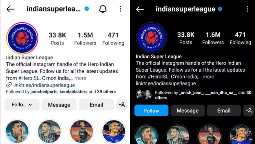 ഐഎസ്എല്ലിന്റെ ഇൻസ്റ്റഗ്രാം അക്കണ്ടിൽ അൺഫോളോ ക്യാമ്പെയിൻ. ഇന്ത്യൻ സൂപ്പർ ലീഗിൽ കേരള ബ്ലാസ്റ്റേഴ്സ്-ബെംഗളൂരു എഫ്സി നോക്കൗട്ട് മത്സരത്തിലെ വിവാദ റഫറീയിങ്ങിനും ഗോളിനും പിന്നാലെയാണ് മഞ്ഞപ്പടയുടെ ക്യാമ്പെയിൻ. റഫറിയുടെ തീരുമാനത്തോട് യോജിക്കാനാവില്ലെന്നും മൈതാനം വിടാൻ പരിശീലകൻ ഇവാൻ വുകോമനോവിച്ച് എടുത്ത തീരുമാനം ശരിയാണ് എന്ന് ചൂണ്ടിക്കാട്ടിയാണ് അൺഫോളോ ക്യാമ്പെയിന് മഞ്ഞപ്പട ആരാധകർ സാമൂഹ്യമാദ്ധ്യമങ്ങളിലൂടെ ആഹ്വാനം നൽകിയത്.