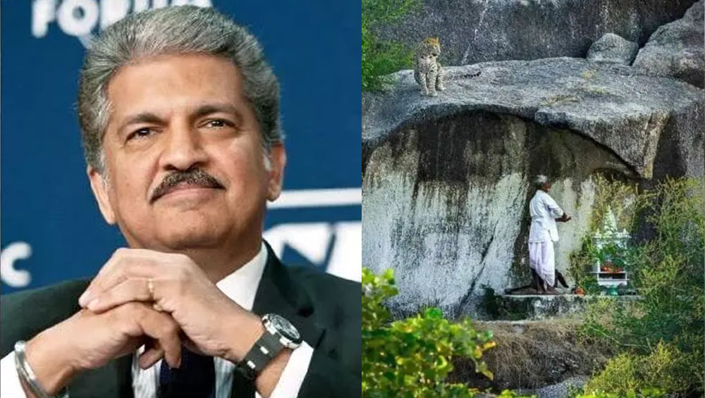 കാട്ടിലെ ക്ഷേത്രത്തിൽ പൂജ ചെയ്യുന്ന വൃദ്ധനും , കൂട്ടായി പുലിയും : ചിത്രം പങ്ക് വച്ച് ആനന്ദ് മഹീന്ദ്ര
