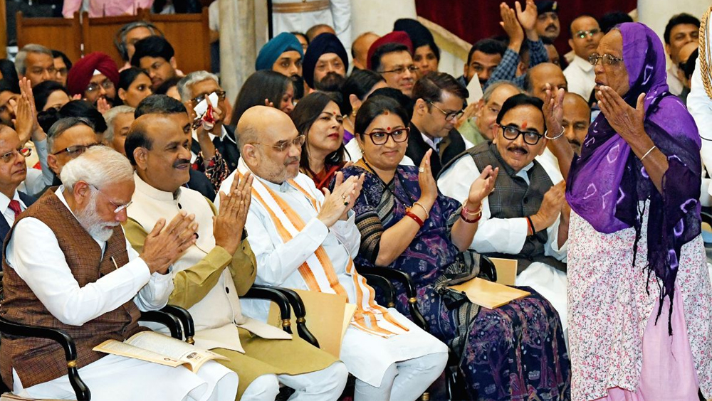 ഡൽഹി: രാഷ്ട്രപതി ഭവനിൽ നടന്ന പത്മ പുരസ്കാര ദാന ചടങ്ങിൽ നിന്നുള്ള മനോഹരമായ ഒരു വീഡിയോയാണ് സമൂഹമാദ്ധ്യമങ്ങളിൽ വൈറലാകുന്നത്. പത്മശ്രീ പുരസ്കാര ജേതാവായ ഹിർബായ് ഇബ്രാഹിം ലോബിയുടെ സന്തോഷ പ്രകടനമാണ് ഭാരതീയരുടെ ഹൃദയം കീഴടക്കുന്നത്. പുരസ്കാരം വാങ്ങുന്നതിനായി സദസ്സിലെത്തിയ ഹീർബായ് പ്രധാനമന്ത്രിയുടെ മുന്നിൽ വന്നു നിന്ന് സംസാരിക്കുന്നതിന്റെയും രാഷ്ട്രപതി ദ്രൗപദി മുർവിനെ തലോടുന്നതിന്റെയും വീഡിയോ ഭാരതീയർ ഏറ്റെടുത്ത് കഴിഞ്ഞു.