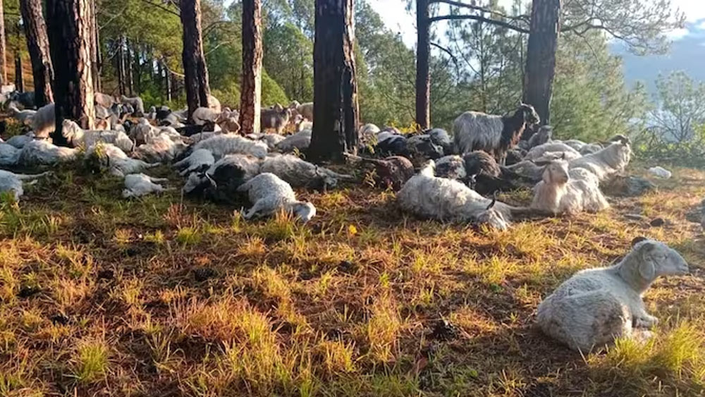 കനത്ത മഴയെ തുടർന്ന് ഋഷികേശിൽ നിന്ന് ഉത്തരകാശിയിലേക്ക് ആടുകളെ കൊണ്ടുവരുന്നതിനിടെ പൈൻമരങ്ങളുടെ ഇടയിലെത്തിയപ്പോഴായിരുന്നു അപകടം. പെട്ടെന്നുണ്ടായ ഇടിമിന്നലിൽ മുഴുവൻ ആടുകൾക്കും വൈദ്യുതാഘാതമേൽക്കുകയായിരുന്നു.