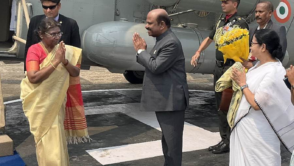 കൊൽക്കത്ത: പശ്ചിമ ബംഗാളിൽ ദ്വിദിന സന്ദർശനത്തിനോടനുബന്ധിച്ച് രാഷ്ട്രപതി ദ്രൗപദി മുർമു കൊൽക്കത്തയിലെത്തി. മുഖ്യമന്ത്രി മമത ബാനർജിയും, സംസ്ഥാന ഗവർണർ സി.വി. ആനന്ദബോസും നഗരവികസനവകുപ്പ് മന്ത്രി ഫിർഹാദ് ഹക്കിമും ചേർന്ന് രാഷ്ട്രപതിയെ പ്രൗഢഗംഭീരമായി സ്വീകരിച്ചു.