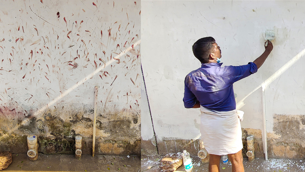 എന്നാൽ ഇന്ന് കോഴിക്കോട് ബീച്ച് ആശുപത്രിയുടെ മതിലിൽ ചോരപ്പാടുകളില്ല. പോസ്റ്റ് വ്യാപകമായി ചർച്ച ചെയ്തോടെ അധികാരികളുടെ കണ്ണുകൾ തുറന്നു. കഴിഞ്ഞ രണ്ട് ദിവസമായി ഇവിടെ പെയിന്റിംഗ് തകൃതിയായി നടക്കുകയാണ്. ചോരപ്പാടുകളുള്ള ചുമർ പെയിന്റ് അടിച്ചു വൃത്തിയാക്കുന്ന ദൃശ്യമാണ് സാജൻ വി നമ്പ്യാർ പുറത്തുവിട്ടിരിക്കുന്നത്.