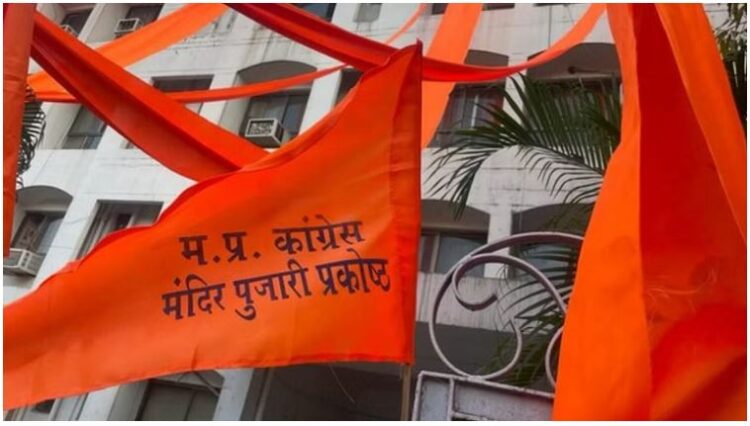 ഭോപ്പാൽ : മധ്യപ്രദേശ് സംസ്ഥാന കൊണ്ഗ്രെസ്സ് കമ്മിറ്റി ഓഫീസിൽ പുതിയ വേഷം കെട്ടലുമായി കേൺഗ്രെസ്സ് നേതാവ് കമൽ നാഥ്. പേരിനു പോലും കൊണ്ഗ്രെസ്സ് പതാക കാണാനില്ല. കമൽ നാഥ് നേതാക്കൾ കയ്യിൽ കാവി നിറത്തിലുള്ള ചരടും കെട്ടിയിരിക്കുന്നു.കൊണ്ഗ്രെസ്സ് ഓഫീസിനെ ഹിന്ദു സംഘടനാ ഓഫീസ് പോലെ കാവി പുതപ്പിച്ചു കൊണ്ട് ജങ്ങളെ കബളിപ്പിക്കാൻ ശ്രമിക്കുകയാണ് മധ്യപ്രദേശ് കൊണ്ഗ്രെസ്സ് നേതൃത്വം.