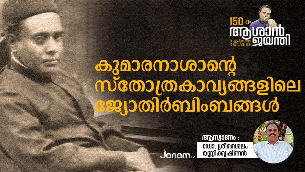 സൂര്യസ്തവങ്ങളെന്നു പേരിട്ടുവിളിക്കാവുന്ന കൃതികളൊന്നും തന്നെ കുമാരനാശാൻ രചിച്ചിട്ടില്ല. എന്നിരുന്നാലും സ്തോത്രകാവ്യങ്ങളിൽ പലതിലും സൂര്യനെക്കുറിച്ചുള്ള ആദരവും ഭക്തിയും കലർന്ന പരാമർശങ്ങൾ ധാരാളം കടന്നുവരുന്നുണ്ട്. ആത്മീയചൈതന്യത്തെ കുറിക്കുവാനും ഗുരുസങ്കല്പത്തെ ആവിഷ്കരിക്കുവാനും പ്രപഞ്ചവിധാനത്തെ വ്യക്തമാക്കുവാനും സ്തോത്രങ്ങളിൽ ശ്രമിക്കുമ്പോഴൊക്കെ പ്രകാശബിംബങ്ങൾ വന്നു നിറയുന്നുണ്ട്. വേദോപനിഷത്തുകളിലും പുരാണങ്ങളിലും സൂര്യനുമായി ബന്ധപ്പെട്ടു സൂചിതമായ സങ്കല്പങ്ങൾ കുമാരനാശാൻ ഔചിത്യപൂർവ്വം സ്വാംശീകരിച്ചിട്ടുമുണ്ട്. അദ്ദേഹത്തിന്റെ സ്തോത്രകാവ്യങ്ങളിലൊക്കെത്തന്നെ സൂര്യാസ്പദമായ ഒരു പ്രകൃതിദർശനവും കണ്ടെത്താനാവുന്നു. പ്രകൃത്യുപാസന ഈശ്വരോപാസനയുടെ തലത്തിലേക്ക് ഉയരുന്ന വേളയിലൊക്കെ കേവലമൊരു പ്രകൃതിപ്രതിഭാസത്തിന്റെ നിലവിട്ട് പ്രത്യക്ഷദൈവതമായി സൂര്യൻ സ്തോത്രങ്ങളിൽ ജ്വലിച്ചുനിൽക്കുന്നുണ്ട്. സൗരയൂഥത്തിന്റെ വൈവിധ്യമാർന്ന പരാമർശങ്ങളും പല സ്തോത്രങ്ങളിലുണ്ട്. സൂര്യനും ചന്ദ്രനും നക്ഷത്രരാശികളുമടങ്ങുന്ന പ്രപഞ്ചവ്യവസ്ഥയെക്കുറിച്ചുള്ള ഭാരതീയസങ്കല്പം തന്നെയാണ് കുമാരനാശാന്റെ സ്തോത്രകാവ്യങ്ങളിലും പ്രഭാവം ചെലുത്തിയിട്ടുള്ളത്. ഈ പ്രഭാവത്തിന്റെ പ്രത്യക്ഷനിദർശനങ്ങളായി സ്തോത്രകാവ്യങ്ങളിലെ സൂര്യബിംബങ്ങളെ കണക്കാക്കാനാവും. പവിത്രചൈതന്യം പ്രസരിപ്പിക്കുന്ന ആത്മീയബിംബങ്ങളാണ് സ്തോത്രകവനങ്ങളിലെ സൂര്യബിംബങ്ങൾ.