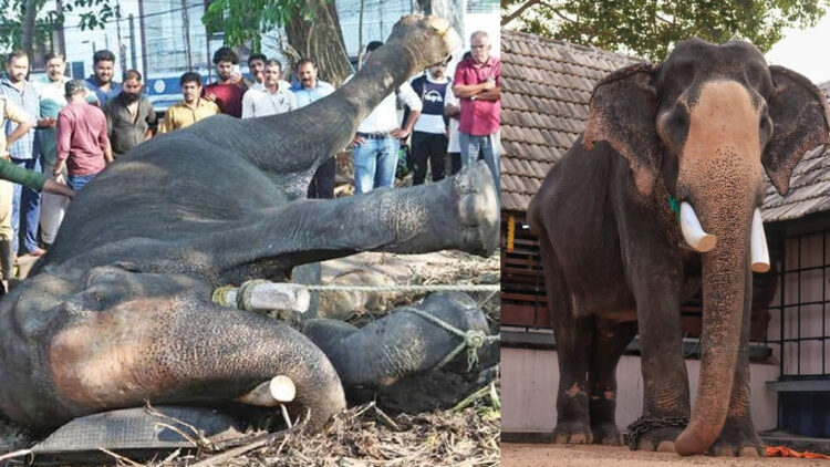 വലിയശാല കാന്തള്ളൂർ മഹാദേവ ക്ഷേത്രത്തിൽ പാർപ്പിച്ചിരുന്ന ശിവകുമാർ എന്ന ആനയാണ് ഇന്നലെ പുലർച്ചെ അഞ്ച് മണിയോടെ ക്ഷേത്രവളപ്പിനുള്ളിൽ വീണത്. ഭക്ഷണ അവശിഷ്ടങ്ങളും മറ്റും കൂട്ടിയിട്ടിരുന്ന ചതുപ്പ് പോലുള്ള ഇടത്ത് ശിവകുമാർ വീഴുകയായിരുന്നു. വീഴ്ചയിൽ കൊമ്പന് തിരികെ എണീയ്ക്കാൻ സാധിക്കാതെ വരികയായിരുന്നു.