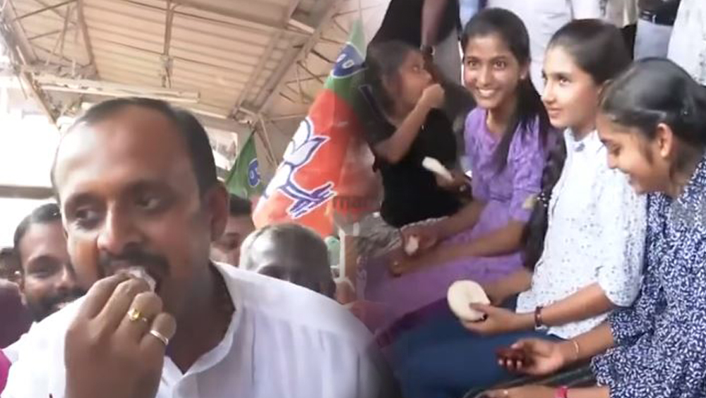 അപ്പം കൊടുത്ത് ആഘോഷം; കോട്ടയത്ത് വന്ദേഭാരത് ട്രെയിനിന് വൻ സ്വീകരണം; യാത്രക്കാർക്ക് അപ്പം നൽകി ബിജെപി പ്രവർത്തകർ