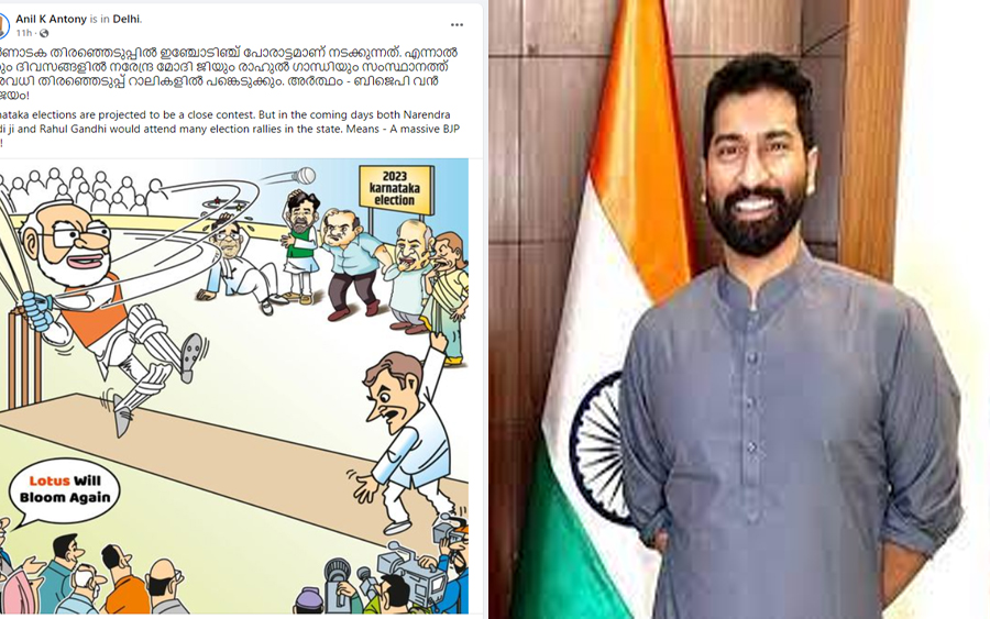 കർണ്ണാട തിരഞ്ഞെടുപ്പിനെ ക്രിക്കറ്റ് മത്സരത്തിലൂടെയാണ് അനിൽ കെ ആന്റണി വരച്ചു കാട്ടിയത്. രാഹുൽ പൊതുസമ്മേളനങ്ങളിൽ ദയനീയമായ പരാജയപ്പെടുന്നത് പറയാതെ പറയുകയാണ് അനിൽ കെ ആന്റണി.