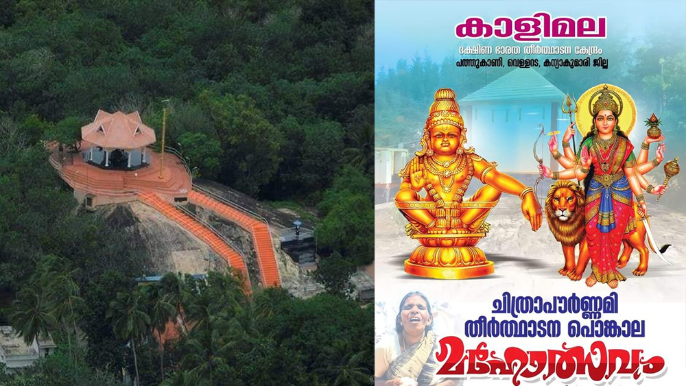 മൂന്നിന് രാവിലെ 9-ന് അഷ്ടാഭിഷേകം, നാലിന് രാവിലെ 9-ന് ഭജന, പത്തിന് സുദർശന ഹോമം, വൈകീട്ട് 4-ന് തിരുവിളക്ക് പൂജ, രാത്രി 8-ന് മലദേവ സംഗമഭൂമിയായ ശൂലം കുത്തിയിലും ഗുഹയിലും വിശേഷാൽ ചാറ്റുപാട്ട്, 5-ന് രാവിലെ 8-ന് 48 സെറ്റിൽമെന്റ് മൂട്ടുകാണിമാർക്ക് പൂർണകുംഭം നൽകി സ്വീകരണം. 9.30-ന് ചിത്രപൗർണമി പൊങ്കാലയുടെ പണ്ടാര അടുപ്പിൽ ദീപം തെളിക്കൽ. 10.15-ന് ഹിന്ദുമഹാസമ്മേളനം പൂർണ ചൈതന്യ ഉദ്ഘാടനം ചെയ്യും. 11-ന് അന്നദാനം, 12-ന് പൊങ്കാല നിവേദ്യം, രാത്രി 12-ന് കാളിയൂട്ടോടെ തീർത്ഥാടനം സമാപിക്കും.