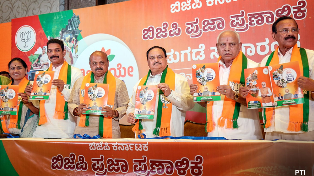 ബെംഗളൂരു: കർണാടക നിയമസഭാ തിരഞ്ഞെടുപ്പിനോടനുബന്ധിച്ച് പ്രകടന പത്രിക ബിജെപി ഇന്ന് പുറത്തിറക്കി. ബിജെപി ദേശീയ അദ്ധ്യക്ഷൻ ജെപി നദ്ദയാണ് പ്രകടന പത്രിക പുറത്തിറക്കിയത്. കർണാടക മുഖ്യമന്ത്രി ബെസവരാജ് ബൊമ്മൈ, മുതിർന്ന നേതാവ് ബിഎസ് യെദ്യൂരപ്പ തുടങ്ങിയവർ പരിപാടിയിൽ പങ്കെടുത്തു.