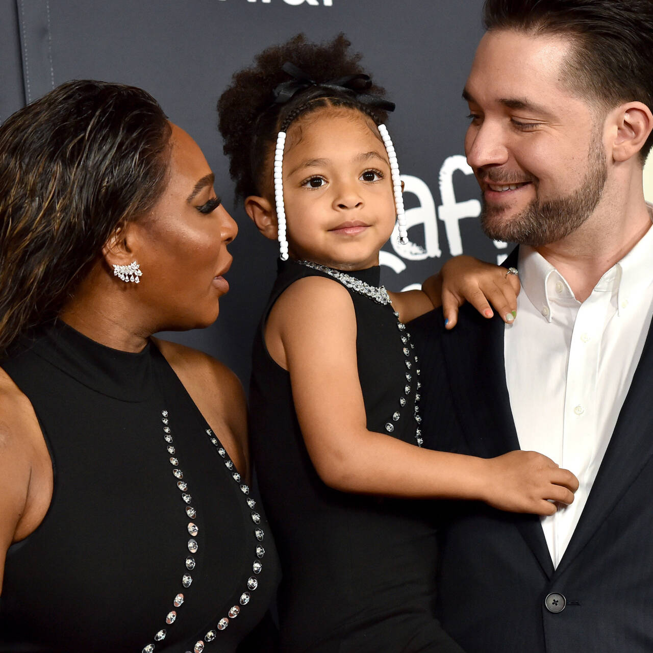 HOLLYWOOD, CALIFORNIA – NOVEMBER 14: (L-R) Serena Williams, Alexis Olympia Ohanian Jr. and Alexis Ohanian attend the 2021 AFI Fest – Closing Night Premiere of Warner Bros. “King Richard” at TCL Chinese Theatre on November 14, 2021 in Hollywood, California. (Photo by Axelle/Bauer-Griffin/FilmMagic)