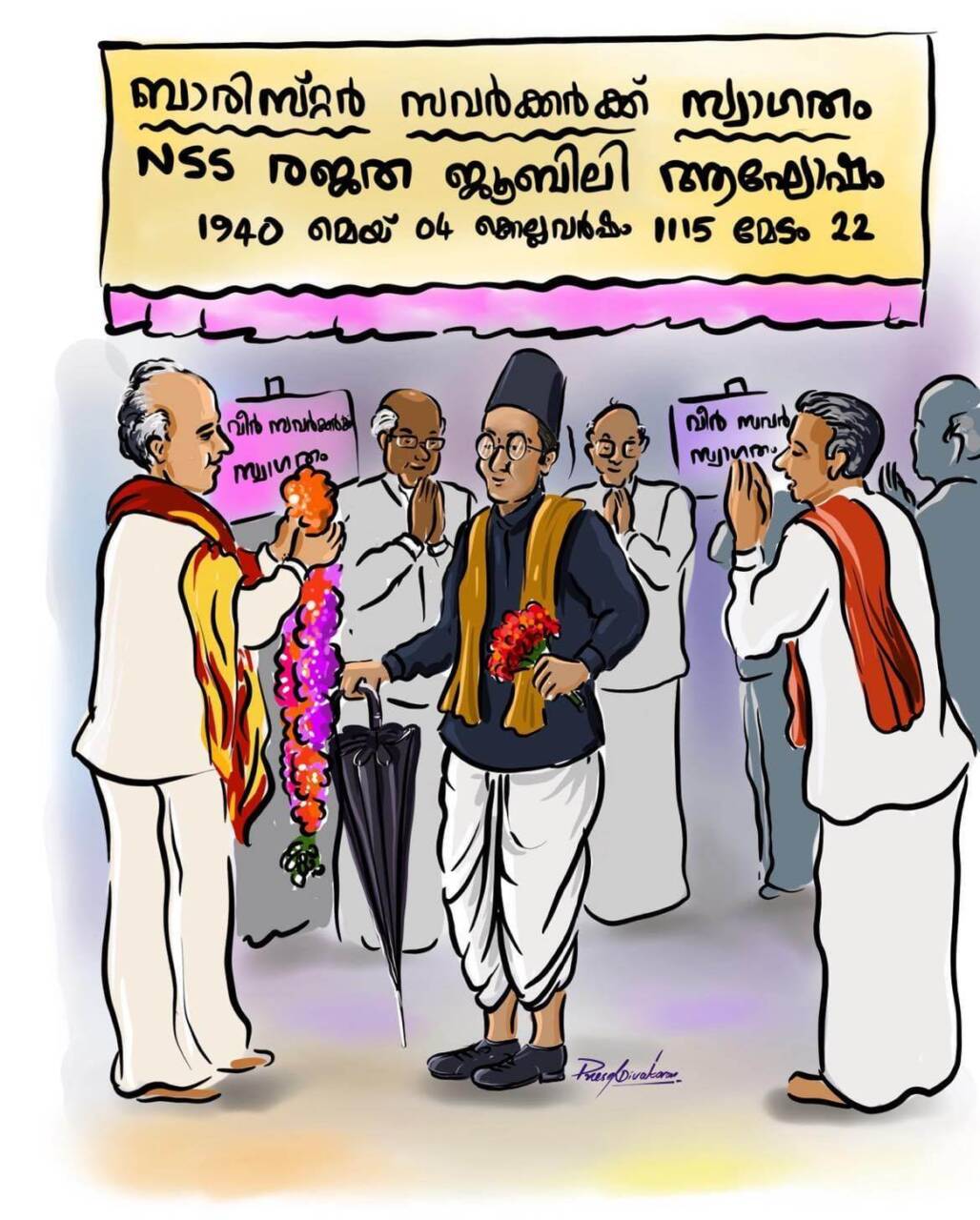 ഈ കാഴ്ചപ്പാടോടെയാണ് കൊല്ലവർഷം 1115 15-ാം ആണ്ട് മേടം 22ന് രജത ജൂബിലി ആഘോഷത്തിന്റെ പൊതു സമ്മേളനത്തിൽ ഭാരതമാകമാനം പ്രതീക്ഷയോടെ കാണുന്ന സ്വാതന്ത്ര്യവീര സവർക്കറെ ചങ്ങനാശ്ശേരിയിലേക്ക് അദ്ദേഹം ആനയിക്കുന്നത്. 1937ലാണ് 28 കൊല്ലത്തെ തടവുശിക്ഷയ്ക്കൊടുവിൽ ബ്രിട്ടീഷ് ഗവണ്മെന്റ് അദ്ദേഹത്തെ മോചിപ്പിക്കുന്നത്. ആറു മാസങ്ങൾക്ക് ശേഷം 1937 ഡിസംബർ10ന് ഹിന്ദു മഹാസഭയുടെ പത്തൊമ്പതാമത് വാർഷിക സമ്മേളനത്തിൽ അതിന്റെ അഖില ഭാരതീയ പ്രസിഡണ്ടായി ചുമതലയേൽക്കുന്നത്. പിന്നീടുള്ള ഏഴ് കൊല്ലക്കാലം അദ്ദേഹം തുടർച്ചയായി ആ പദവിയിൽ ഭാരതമാസകലം സഞ്ചരിച്ചുകൊണ്ട് ഹിന്ദു സമാജത്തെ രാഷ്ട്രീയമായി സംഘടിപ്പിച്ചു.