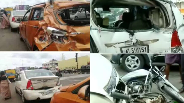 തൃശൂർ: പുതുക്കാട് ദേശീയപാതയിൽ വാഹനങ്ങളുടെ കൂട്ടയിടി. സിഗ്നലിൽ നിർത്തിയിട്ടിരുന്ന വാഹനങ്ങൾക്ക് പിന്നിൽ ടോറസ് ലോറി വന്നിടിക്കുകയായിരുന്നു. സംഭവത്തിൽ ഒരാൾക്ക് പരിക്ക്. നാല് കാറുകൾ, ഒരു ടെമ്പോ, രണ്ട് സ്കൂട്ടർ, ടോറസ് ലോറി എന്നിവയാണ് അപകടത്തിൽപ്പെട്ടത്. പെരുമ്പാവൂരിൽ നിന്ന് പൊള്ളാച്ചിയിലേക്ക് പോകുകയായിരുന്നു ലോറി. ഇതേ ദിശയിലുള്ള വാഹനങ്ങളെയാണ് ഇടിച്ചത്.