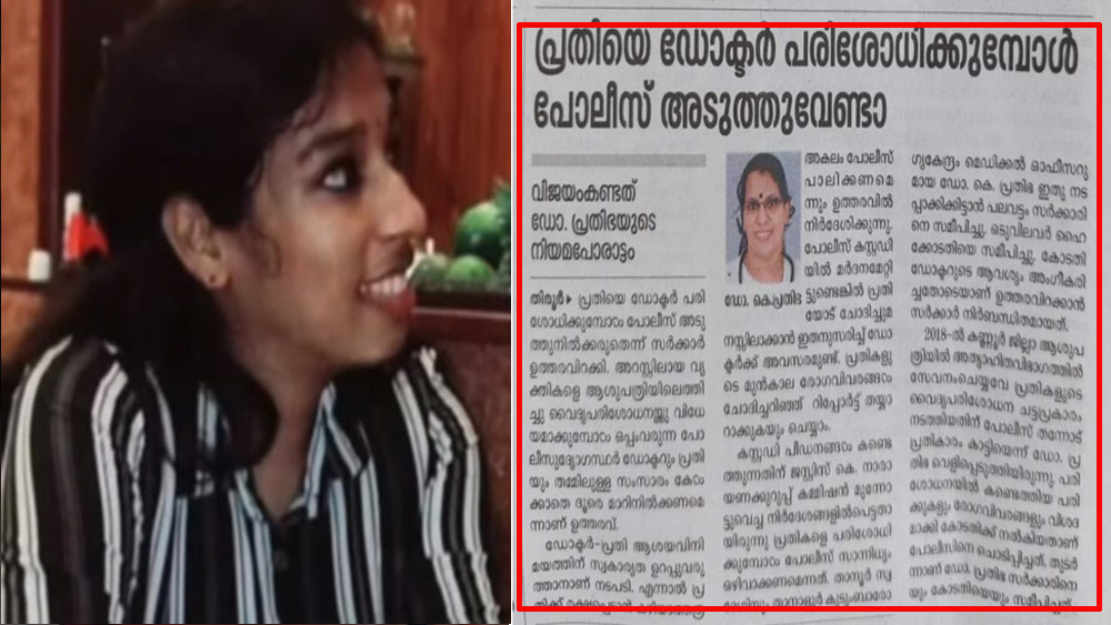 ഡോ.പ്രതിഭയുടെ നിയമപോരാട്ടം; പ്രതിയെ ഡോക്ടർ പരിശോധിക്കുമ്പോൾ പോലീസ് അടുത്തുനിൽക്കരുതെന്ന് നിർദ്ദേശം; ചർച്ചയായി സർക്കാർ ഉത്തരവ്