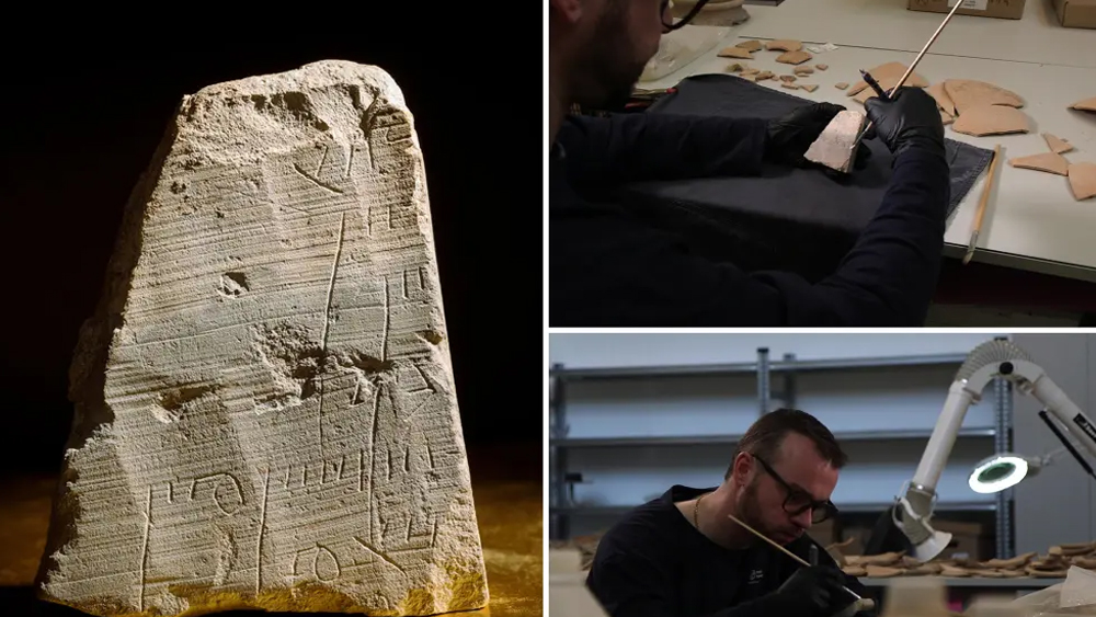 ജറുസലേമിലെ ഒരു ഖനനത്തിനിടെ ഒരു കൂട്ടം ഇസ്രായേലി പുരാവസ്തു ഗവേഷകർ ഒരു ചോക്ക്സ്റ്റോൺ സ്ലാബിൽ കൊത്തിയെടുത്ത 2,000 വർഷം പഴക്കമുള്ള ഫലകം കണ്ടെത്തി.പത്തൊൻപതാം നൂറ്റാണ്ടിന്റെ അവസാനത്തിൽ ബ്രിട്ടീഷ് പുരാവസ്തു ഗവേഷകരായ ബ്ലിസും ഡിക്കിയും ഖനനം നടത്തിയ സ്ഥലത്ത് മുമ്പുണ്ടായിരുന്ന തുരങ്കത്തിൽ നിന്നാണ് ഈ കല്ല് ലഭിച്ചതെന്ന് ഇസ്രായേൽ ആന്റിക്വിറ്റീസ് അതോറിറ്റിയുടെ പോസ്റ്റിൽ പറയുന്നു.