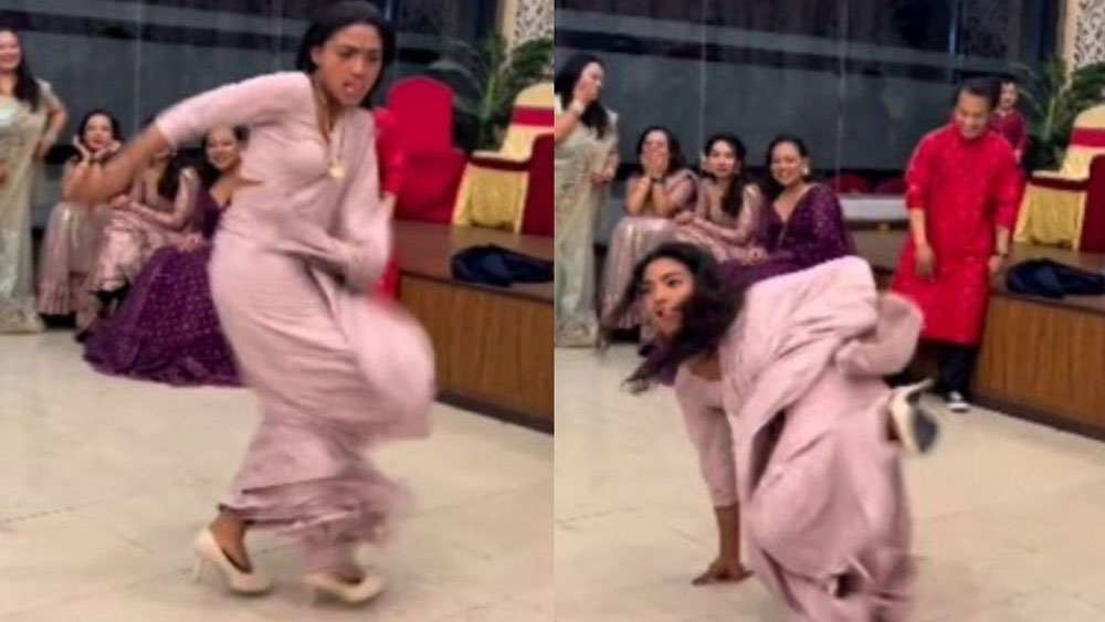 ജീൻസും ടോപ്പും ധരിച്ചാലേ ബ്രേക്ക് ഡാൻസ് കളിക്കാൻ സാധിക്കൂവെന്ന ചിന്താഗതിയെയും തച്ചുടച്ചിരിക്കുകയാണ് ഈ വൈറൽ താരം. വൺ ലെയറിൽ സാരിയുടുത്ത് ഷോർട്ട്-സ്ലീവ് ബ്ലൗസണിഞ്ഞ് വലിയ ഹീൽസ് ചെരുപ്പ് ധരിച്ച് എത്ത്‌നിക്ക് ലുക്കിലായിരുന്നു പെൺകുട്ടി ചടങ്ങിനെത്തിയത്. ഹാളിൽ പാട്ടുവച്ചതോടെ താളത്തിന് അനുസരിച്ച് യുവതി നൃത്തം ചെയ്യാൻ തുടങ്ങി. തീർത്തും അനായാസമായ രീതിയിലായിരുന്നു അവർ കടുപ്പമേറിയ നൃത്തച്ചുവടുകൾ കാഴ്ചവച്ചത്. യുവതിയുടെ പ്രകടനത്തെ അത്ഭുതത്തോടെ ആളുകൾ നോക്കി നിൽക്കുന്നതും വീഡിയോയിൽ കാണാം.