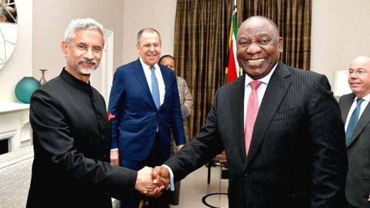കേപ്ടൗൺ: ദക്ഷിണാഫ്രിക്കൻ പ്രസിഡന്റ് സിറിൽ റമഫോസയുമായി കൂടിക്കാഴ്ച നടത്തി വിദേശകാര്യ മന്ത്രി എസ്. ജയശങ്കർ. ബ്രിക്സ് വിദേശകാര്യ മന്ത്രിതല യോഗത്തിന്റെ ഭാഗമായാണ് മൂന്ന് ദിവസത്തെ സന്ദർശനത്തിനായി ജയശങ്കർ ദക്ഷിണാഫ്രിക്കയിലെത്തിയത്. ബ്രസീൽ, റഷ്യ, ഇന്ത്യ, ചൈന, ദക്ഷിണാഫ്രിക്ക എന്നീ രാജ്യങ്ങളുടെ കൂട്ടായ്മയാണ് ബ്രിക്സ്.