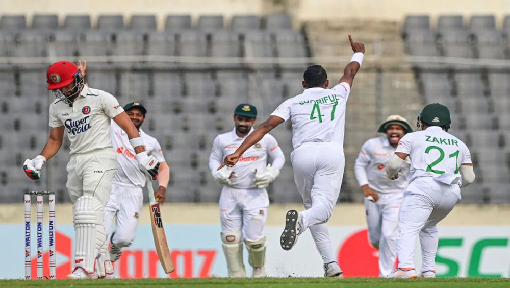 ധാക്ക: അഫ്ഗാനിസ്ഥാനെതിരായ ഏക ടെസ്റ്റിൽ 546 റൺസിന്റെ ചരിത്ര വിജയം നേടി ബംഗ്ലാദേശ്. 662 റൺസിന്റെ പടുകൂറ്റൻ ലക്ഷ്യം പിന്തുടർന്ന അഫ്ഗാൻ 115 റൺസിലൊതുങ്ങുകയായിരുന്നു. നാലു വിക്കറ്റെടുത്ത ടസ്കിൻ അഹമ്മദും മൂന്ന് വിക്കറ്റെടുത്ത ഷോറീഫുൾ ഇസ്ലമും ചേർന്നാണ് അഫ്ഗാനെ ചരിത്രത്തിലെ ഏറ്റവും വലിയ തോൽവിയിലേക്ക് തള്ളിവിട്ടത്.