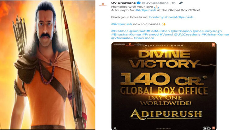 പ്രഖ്യാപിച്ച നാൾ മുതൽ വാർത്തകളിൽ ഇടംപിടിച്ച് പ്രഭാസ് ചിത്രം ആദിപുരുഷിന്റെ ആദ്യദിന കളക്ഷൻ റിപ്പോർട്ട് പുറത്ത് വിട്ട് നിർമ്മാതാക്കൾ. രാമായണത്തെ ആസ്പദമാക്കിയുള്ള എപിക് മിത്തോളജിക്കൽ ചിത്രത്തിൽ ബാഹുബലി താരം പ്രഭാസ് ആണ് നായകനെന്നതും ചിത്രത്തിന്റെ വിപണിമൂല്യം വർധിപ്പിച്ച ഘടകമായിരുന്നു. വലിയ പരസ്യ പ്രചരണങ്ങളോടെയും സ്ക്രീൻ കൗണ്ടോടെയും എത്തിയ ചിത്രത്തിനെതിരെ ചില കേന്ദ്രങ്ങളിൽ നിന്ന് വലിയ തോതിൽ നെഗറ്റീവ് റീവ്യുകൾ പ്രചരിപ്പിച്ചിരുന്നു. എന്നാൽ ആദ്യദിന കളക്ഷനിൽ ഇത് പ്രതിഫലിച്ചിട്ടില്ലെന്ന് മാത്രമല്ല, റെക്കോർഡ് നേട്ടം സ്വന്തമാക്കിയിട്ടുമുണ്ട് ചിത്രമെന്നാണ് വിവരം.