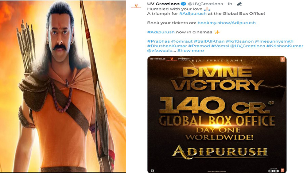 പ്രഖ്യാപിച്ച നാൾ മുതൽ വാർത്തകളിൽ ഇടംപിടിച്ച് പ്രഭാസ് ചിത്രം ആദിപുരുഷിന്റെ ആദ്യദിന കളക്ഷൻ റിപ്പോർട്ട് പുറത്ത് വിട്ട് നിർമ്മാതാക്കൾ. രാമായണത്തെ ആസ്പദമാക്കിയുള്ള എപിക് മിത്തോളജിക്കൽ ചിത്രത്തിൽ ബാഹുബലി താരം പ്രഭാസ് ആണ് നായകനെന്നതും ചിത്രത്തിന്റെ വിപണിമൂല്യം വർധിപ്പിച്ച ഘടകമായിരുന്നു. വലിയ പരസ്യ പ്രചരണങ്ങളോടെയും സ്ക്രീൻ കൗണ്ടോടെയും എത്തിയ ചിത്രത്തിനെതിരെ ചില കേന്ദ്രങ്ങളിൽ നിന്ന് വലിയ തോതിൽ നെഗറ്റീവ് റീവ്യുകൾ പ്രചരിപ്പിച്ചിരുന്നു. എന്നാൽ ആദ്യദിന കളക്ഷനിൽ ഇത് പ്രതിഫലിച്ചിട്ടില്ലെന്ന് മാത്രമല്ല, റെക്കോർഡ് നേട്ടം സ്വന്തമാക്കിയിട്ടുമുണ്ട് ചിത്രമെന്നാണ് വിവരം.