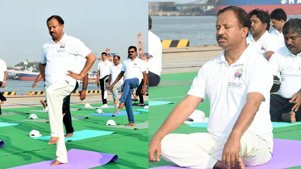 വിശാഖപട്ടണം: യോഗദിന പരിപാടികളിൽ പങ്കുച്ചേർന്ന് കേന്ദ്ര വിദേശകാര്യ സഹമന്ത്രി വി. മുരളീധരൻ. വിശാഖപട്ടണത്തെ കണ്ടെയ്‌നർ ടെർമിനലിലെ ജീവനക്കാർക്കും ജനങ്ങൾക്കുമൊപ്പമാണ് കേന്ദ്രമന്ത്രി യോഗ അഭ്യസിച്ചത്.ഇന്ത്യ ജി20 അദ്ധ്യക്ഷ പദവി വഹിക്കുന്നതിനാൽ ഈ വർഷത്തെ യോഗാദിനം ഏറെ പ്രത്യേകതകൾ നിറഞ്ഞതാണെന്ന് അദ്ദേഹം പറഞ്ഞു.