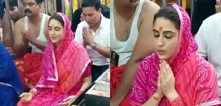 പിങ്ക് സാരി ധരിച്ച് മഹാകാലേശ്വര് ക്ഷേത്രത്തിൽ കണ്ണടച്ച് ഇരുന്ന് പ്രാർത്ഥിക്കുന്ന സാറാ അലിഖാന്റെ ചിത്രം സോഷ്യൽ മീഡിയയിൽ വൈറലായി കഴിഞ്ഞു . അടുത്തിടെ റിലീസ് ആയ സാരാ ഹത്കെ സാരാ ബച്ച്കെ എന്ന സിനിമയുടെ വിജയം ആഘോഷിക്കുന്ന വേളയിലാണ് സാറ ക്ഷേത്ര ദർശനത്തിനെത്തിയത്. ഇതാദ്യമായല്ല സാറ ക്ഷേത്രത്തിൽ എത്തുന്നത്. നേരത്തെ മെയ് മാസത്തിൽ സഹനടൻ വിക്കി കൗശലിനൊപ്പം നടി ക്ഷേത്ര ദർശനം നടത്തിയിരുന്നു.സെയ്ഫ് അലി ഖാന്റേയും ആദ്യ ഭാര്യ അമൃത സിംഗിന്റയും ഏക മകളാണ് സാറ അലി ഖാൻ. ഇസ്ലാമിക വിശ്വാസിയായ സാറ ക്ഷേത്ര ദർശനം നടത്തുന്നതിനെതിരെ വിമർശനങ്ങൾ ഉയർന്നിരുന്നു
