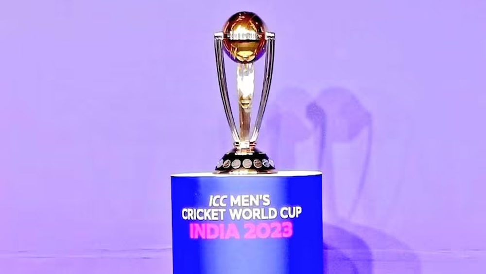 ജൂൺ 26ന്, ഭൂമിയിൽ നിന്ന് ഏകദേശം 120000 അടി ഉയരത്തിലുള്ള സ്ട്രാറ്റോസ്ഫിയറിൽ നിന്നാണ് ലോകകപ്പ് ട്രോഫി പര്യടനം ആരംഭിച്ചത്. ഏകദിന ലോകകപ്പിന്റെ ഉദ്ഘാടന വേദിയായ അഹമ്മദാബാദ് നരേന്ദ്രമോദി സ്റ്റേഡിയത്തിൽ എത്തിച്ച ശേഷം അവിടെ നിന്ന് മറ്റ് നഗരങ്ങളിലേക്ക് പര്യടനം വ്യാപിപ്പിക്കുകയായിരുന്നു.