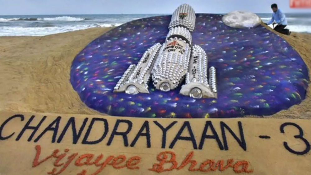 ഭുവനേശ്വർ: ഐഎസ്ആർഒയുടെ ഏറ്റവും പുതിയ ബഹിരാകാശ ദൗത്യമായ ചന്ദ്രയാൻ – 3 മണലിൽ സൃഷ്ടിച്ച് പ്രശസ്ത കലാകാരൻ സുദർശൻ പട്നായിക്. പുതിയ ബഹിരാകാശ ദൗത്യത്തിൽ വിജയിക്കുന്നതിനായി ആശംസയും അറിയിച്ചുകൊണ്ടാണ് സുദർശൻ മണലിൽ രൂപം സൃഷ്ടിച്ചിരിക്കുന്നത്. ഒഡീഷയിലെ പുരി ബീച്ചിലാണ് ‘വിജയീ ഭവ’എന്ന സന്ദേശത്തോടെ യുവാവ് മണൽ കല ഒരുക്കിയിക്കുന്നത്. 500 സ്റ്റീൽ പാത്രങ്ങൾ ഉൾപ്പെടുത്തി നിർമ്മിച്ച 22 അടി നീളമുള്ള മണൽരൂപമാണിത്. ഇതിന്റെ ചിത്രങ്ങൾ സോഷ്യൽ മീഡിയയിൽ വൈറലാണ്.