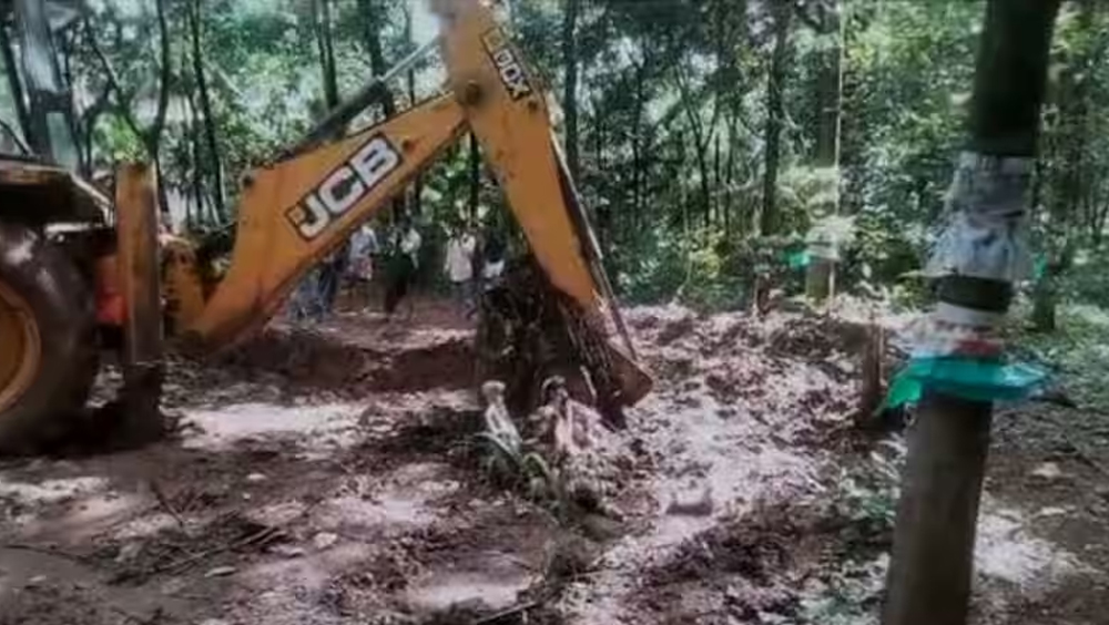 വനം വകുപ്പിന് ലഭിച്ച രഹസ്യ വിവരത്തെ തുടർന്ന് നടത്തിയ പരിശോധനയിലാണ് ജഡം കണ്ടത്തിയത്. തുടർന്ന് ജെസിബി ഉപയോഗിച്ച് മണ്ണ് നീക്കി ആനയുടെ ശരീരാവശിഷ്ടങ്ങൾ പുറത്തെടുത്തു. 20 ദിവസത്തെ പഴക്കമാണ് ജഡത്തിനുണ്ടായിരുന്നത്. ആനയ്ക്ക് 15 വയസ് പ്രായമാണെന്നും അഴുകിപ്പോകാൻ രാസപദാർത്ഥങ്ങൾ കലർത്തിയോ എന്ന കാര്യം പരിശോധിക്കണമെന്നും വനം വകുപ്പ് ഉദ്യോഗസ്ഥർ അറിയിച്ചു. ആനയെ വേട്ടയാടി പിടിച്ചതാണോ, സംഭവത്തിൽ മറ്റു ആളുകൾക്ക് പങ്കുണ്ടോ തുടങ്ങിയ കാര്യങ്ങളിൽ വിദഗ്ധ അന്വേഷണം ആവശ്യമാണെന്നും വനം വകുപ്പ് വ്യക്തമാക്കി. അതേസമയം സ്ഥലയുടമ റോയിയെ കണ്ടെത്താനുള്ള അന്വേഷണം ആരംഭിച്ചു.