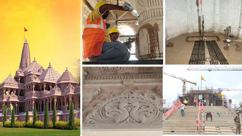 ഏകദേശം 161 അടി ഉയരമുള്ള ക്ഷേത്രത്തിന് 360 തൂണുകളാണ് ഉള്ളത്. രാമക്ഷേത്രത്തിന്റെ ആദ്യഘട്ടത്തിൽ 167 തൂണുകളാണ് സ്ഥാപിച്ചിരിക്കുന്നത്. നിലവിൽ ഈ തൂണുകളിൽ വിഗ്രഹങ്ങൾ കൊത്തിവയ്ക്കുകയാണ്. പിങ്ക് നിറത്തിലുള്ള മണൽക്കല്ലുകൾ കൊണ്ടാണ് ഈ തൂണുകൾ നിർമ്മിച്ചിരിക്കുന്നത്. ഈ തൂണുകളിൽ ദേവവിഗ്രഹങ്ങൾ കൊത്തിവച്ചിട്ടുണ്ട്. ഹനുമാൻ, വാനര സൈന്യം, ശിവൻ എന്നീ ദേവൻമാരുടെ വിഗ്രഹങ്ങളുമുണ്ട്. രാമക്ഷേത്രത്തലേക്ക് കയറാനുള്ള ചവിട്ടു പടികളും ചിത്രങ്ങളിലുണ്ട്. അയോദ്ധ്യയിൽ കോടിക്കണക്കിന് രാമഭക്തരുടെ സ്വപ്നമാണ് ഇപ്പോൾ യാഥാർത്ഥ്യമാകുന്നത്.