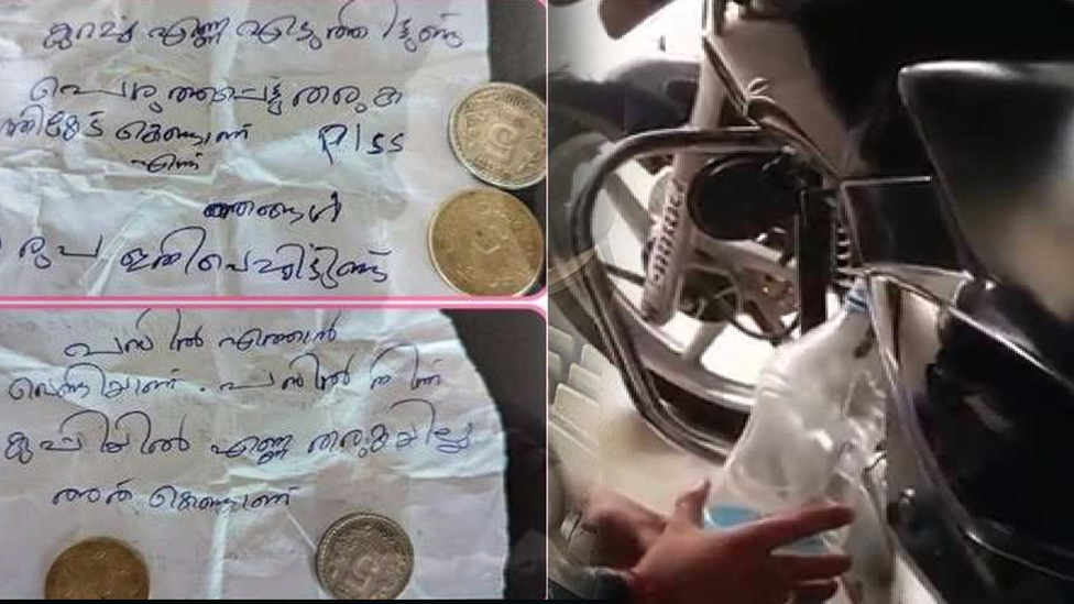 കോഴിക്കോട് ബൈപ്പാസ് റോഡരികില് തൊണ്ടയാട് പാലത്തിന് താഴെയായിരുന്നു അരുൺലാൽ വാഹനം പാർക്ക് ചെയ്തിരുന്നത്. ബൈക്ക് എടുത്ത് തിരിച്ച് വീട്ടില് എത്തിയപ്പോഴായിരുന്നു സംഭവം അറിഞ്ഞത്. മഴക്കോട്ടിന്റെ കവറില് നിന്ന് നാണയ തുട്ടുകള് താഴെ വീണതോടെയാണ് കത്ത് ശ്രദ്ധയിൽപെട്ടത്. ‘കുറച്ച് എണ്ണ എടുത്തിട്ടുണ്ട്, പൊരുത്തപ്പെട്ട് തരിക, ഗതികേട് കൊണ്ടാണ്, ഞങ്ങള് 10 രൂപ ഇതില് വച്ചിട്ടുണ്ട്. പമ്പില് എത്താന് വേണ്ടിയാണ്. പമ്പില് നിന്ന് കുപ്പിയില് എണ്ണ തരുകയില്ല. അതുകൊണ്ടാണ്’, എന്നായിരുന്നു അജ്ഞാതൻ കത്തിൽ കുറിച്ചിരുന്നത്.