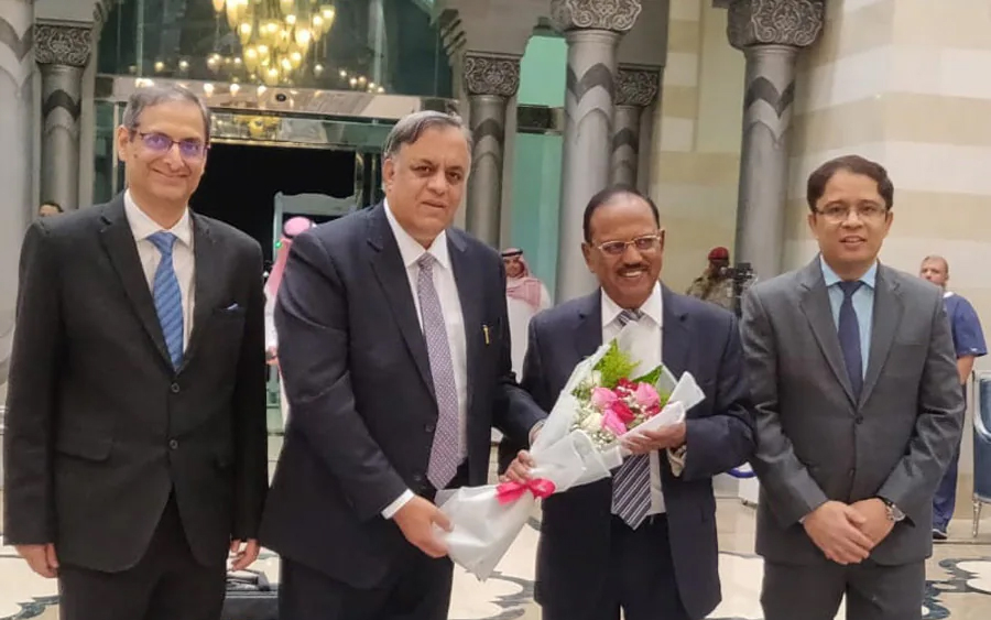 യുക്രെയ്നിലെ ദേശീയ സുരക്ഷാ ഉപദേഷ്ടാക്കളുടെ യോഗത്തിൽ പങ്കെടുക്കാനാണ് അജിത് ഡോവൽ ജിദ്ദയിലെത്തിയത്. അംബാസഡർ ഡോ. സുഹെൽ ഖാനും കോൺസൽ ജനറൽ മുഹമ്മദ് ഷാഹിദ് ആലമും ചേർന്ന് അദ്ദേഹത്തെ ജിദ്ദ വിമാനത്താവളത്തിൽ സ്വീകരിച്ചതായി റിയാദിലെ ഇന്ത്യൻ എംബസി അറിയിച്ചു. റഷ്യ- യുക്രെൻ ചർച്ചകൾക്കായി സൗദി അറേബ്യ വിളിച്ചു ചേർത്ത യോഗത്തിനാണ് ജിദ്ദയിൽ തുടക്കമായത്. 40 രാജ്യങ്ങളിൽ നിന്നുള്ള പ്രതിനിധികൾ പങ്കെടുക്കുന്ന യോഗത്തിലാണ് ഇന്ത്യയെ പ്രതിനിധീകരിച്ച് അജിത് ഡോവൽ പങ്കെടുക്കുന്നത്.