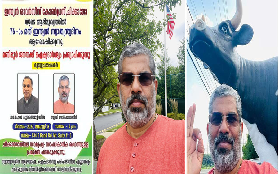 തിരുവനന്തപുരം:  ഗണപതി ഭഗവാനെ കുറിച്ച് സമൂഹമാദ്ധ്യമങ്ങളിലൂടെ അസഭ്യവും അപകീർത്തിപരവുമായ പരാമർശങ്ങൾ നടത്തിയ ഹോംസ്റ്റേ നടത്തിപ്പുകാരനായ സന്ദീപാനന്ദ  കോണ്‍ഗ്രസ് പരിപാടിയില്‍.  ഇന്ത്യന്‍ ഓവര്‍സീസ് കോണ്‍ഗ്രസ്  ചിക്കാഗോയില്‍ സംഘടിപ്പിക്കുന്ന പരിപാടിയിലെ മുഖ്യാതിഥിയാണ് സന്ദീപാനന്ദ. മണിപ്പൂരിന് ഐക്യദാര്‍ഡ്യം പ്രഖ്യാപിക്കാന്‍ ചേരുന്ന പരിപാടിയിൽ  ഫോ പോള്‍ ചൂരത്തൊട്ടിയും പങ്കെടുക്കുന്നുണ്ട്.