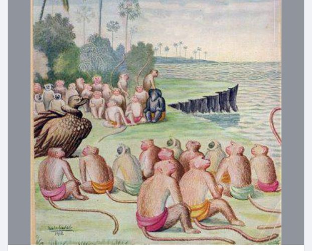 ഇതെല്ലാം കേട്ട ഒരു സമ്പാതിയെന്ന കഴുകൻ വാനരന്മാരെ ഭക്ഷണമായിക്കിട്ടിയതിൽ സന്തോഷിച്ചരികിലെത്തുന്നു. വാനരന്മാരുടെ സംഭാഷണമദ്ധ്യേ തന്റെ ഭ്രാതാവായ ജടായുവിനെപ്പറ്റി പരാമർശിക്കപ്പെടുന്നതു കേട്ട സമ്പാതി സന്തുഷ്ടനായി വാനരന്മാരെ സഹായിക്കാൻ തയ്യാറാകുന്നു. സീതയെ രാവണൻ കടത്തിക്കൊണ്ടു പോകുന്നതിനെപ്പറ്റി തനിക്കറിയാവുന്ന കാര്യങ്ങൾ പറഞ്ഞു കേട്ട വാനരന്മാർക്ക് ലങ്കയെന്ന രാജ്യത്ത് സീതയുണ്ടെന്ന അറിവ് സന്തോഷമേകുന്നു. അയോദ്ധ്യാധിപതിയായ രാമസേവാർത്ഥം ജീവൻ വെടിഞ്ഞ സഹോദരനായ ജടായുവിനായി സമുദ്രതീരത്ത് അന്ത്യകർമ്മം ചെയ്യുവാൻ വേണ്ടതെല്ലാം സമ്പാതിക്ക് ചെയ്തു കൊടുക്കുവാൻ വാനരന്മാർ തയ്യാറായി. (ചെറുപ്പത്തിന്റെ മദത്തിൽ തന്റെ സഹോദരനായ ജടായുവൊത്ത് സൂര്യനെ ലക്ഷ്യമാക്കിപ്പറന്നതും ഉഗ്രമായ ചൂടിൽ നിന്നും സഹോദരനെ രക്ഷിക്കാൻ ശ്രമിക്കുന്നതിനിടയിൽ തന്റെ ചിറകു കരിഞ്ഞതും സഹോദരനെ പിരിഞ്ഞതുമായ കഥ സമ്പാതി വാനരന്മാരോട് പറയുന്നു