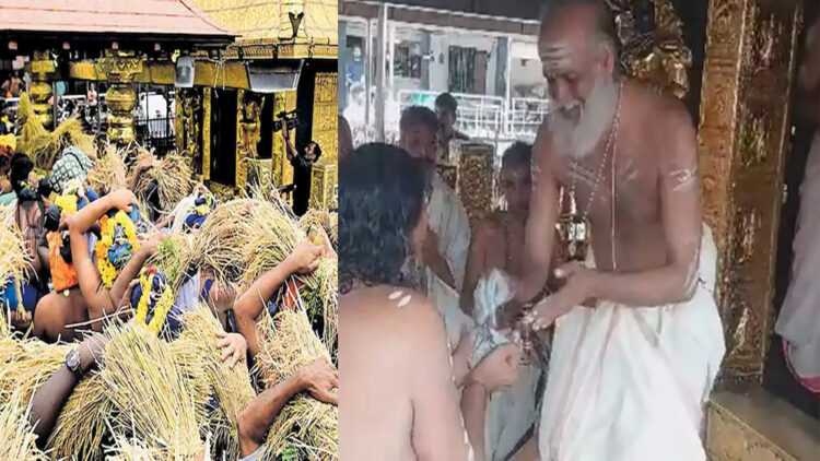 ശബരിനാഥനെ കണ്ടുവണങ്ങി അനുഗ്രഹം നേടാനെത്തിയവർ പതിവിലും അധികമായിരുന്നു. തന്ത്രി കണ്ഠംര് രാജീവര് നെൽക്കതിരുകൾ പൂജിച്ച് ശ്രീകോവിനുള്ളിലെത്തിച്ച് പ്രത്യേക പൂജ നടത്തി. തുടർന്ന് നടതുറന്ന് നെൽക്കതിരുകൾ ശ്രീകോവിലിന് മുൻപിൽ കെട്ടിയിട്ടു.